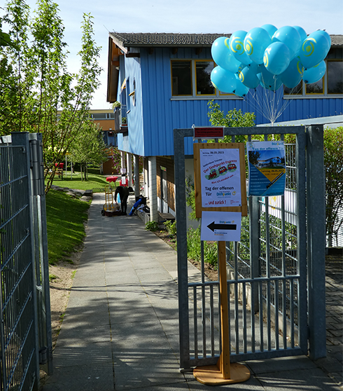 Unsere große blaue Infotafel und die Gasballons lockten schnell neugierige Passanten an und viele verweilten mit interessierten Fragen und waren erstaunt „was der Drehpunkt so alles macht“.